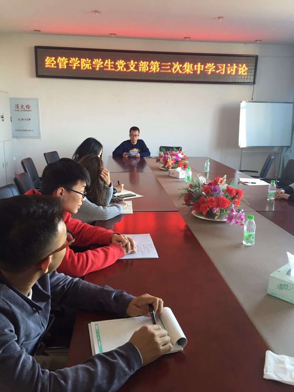 2016年9月28日下午,太阳成集团tyc33455cc官网学生党支部在第五教学楼402会议室召开“两学一做”第三次集中学习和讨论。会议由学生党支部书记曾四龙主持,会上全体党员认真学习了《习近平总书记在参加十二届全国人大四次会议黑龙江省代表团审议时的讲话》和《习近平总书记在黑龙江省考察工作结束时的讲话》。