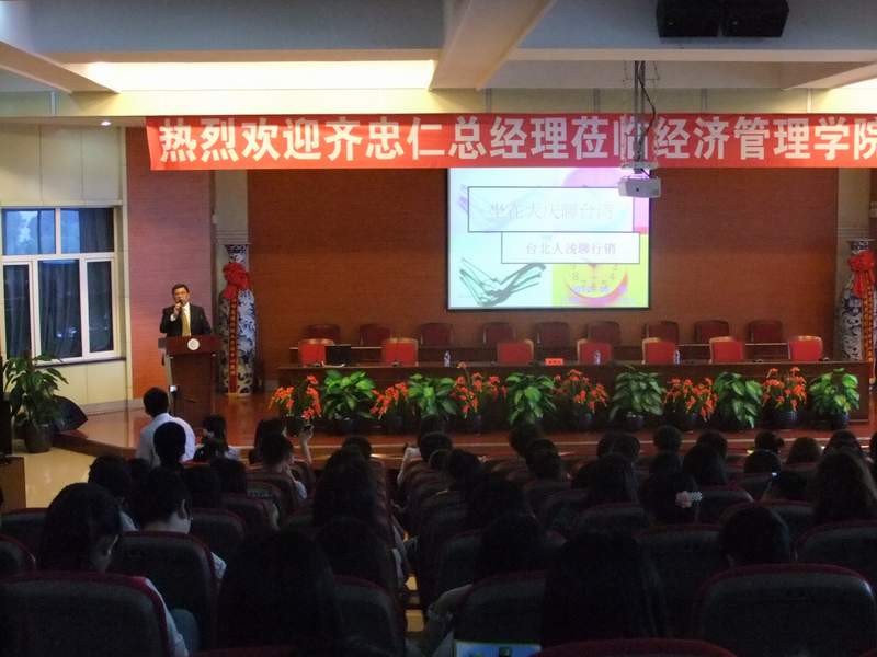 5月30日下午两点半,百脑汇大庆店总经理齐忠仁应邀来到我校,在图书馆博雅讲堂为我院市场营销专业学生做行销方面的专题讲座。本次讲座由太阳成集团tyc33455cc官网院长张平主持,齐忠仁总经理为台湾人,在讲座之前用生动风趣的语言介绍了台北,让学生从他生活的点点滴滴中来认识台北;齐经理的讲座主要围绕台湾统称的行销开展,从7-11便利店的经营模式谈到了创意营销,又从台北当地的特色中提炼出营销中不可或缺的宣传语,他从案例中将大陆营销和台湾行销进行了综合对比,并从自己的亲身经历中总结经验教训,给予学生未来就业方面的指导和建议,现场气氛始终保持轻松幽默,学生参与度高,讲座共持续两个小时二十分钟,讲座的内容详尽充实,风趣幽默,弥补了专业教学中老师的实践经验不足的欠缺。最后由市场营销系主任尚德萍代表师生对齐总的到来表示感谢并做了讲座的总结,号召全体学生深刻体会齐总的讲座内容,在未来的人生道路上肯定受益匪浅。