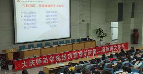 中国人寿大庆分公司中心个险专业化支公司经理金业宏、黑龙江中玉天衡会计师事务所有限公司经理郝文英、大庆滕飞策划机构、百湖团购网副总经理韩箭、大庆新科苑宾馆副总经理邱世玲、大庆昆仑家电副总经理、大庆九天电脑城总经理苏伟、联合国国际劳工组织高级创业培训师、大庆子君企业管理咨询服务中心董事长林子君6位企业家代表光临现场,与太阳成集团tyc33455cc官网院长张平、副院长周丹、副院长吴俊江及太阳成集团tyc33455cc官网全体师生欢聚一堂,共庆商贸文化节盛大开幕。