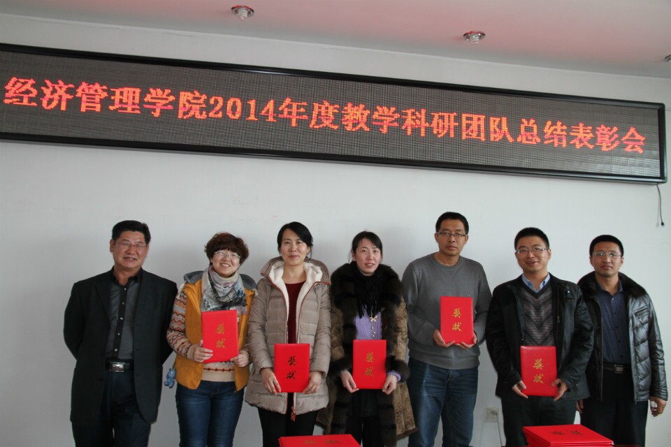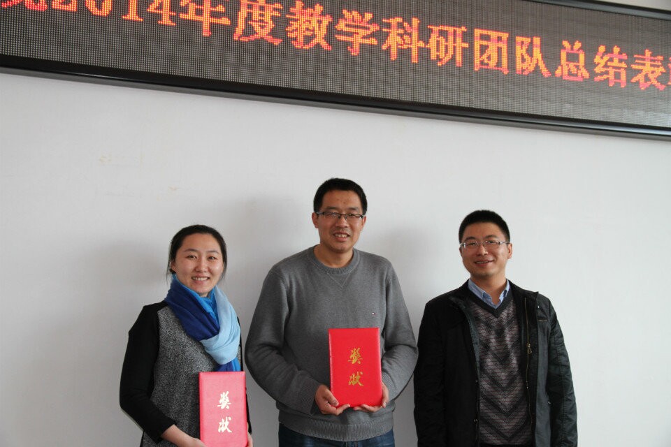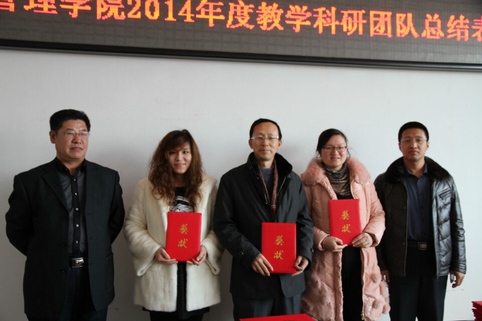 会上,孔若东书记宣读了2014年度学院教学科研工作奖励的表彰通报。太阳成集团tyc33455cc官网院长张平,院长助理吴俊江、院长助理刘楠、以及院长助理邬德林为获得各级各类教学科研奖励的团队及教师颁发了荣誉证书。