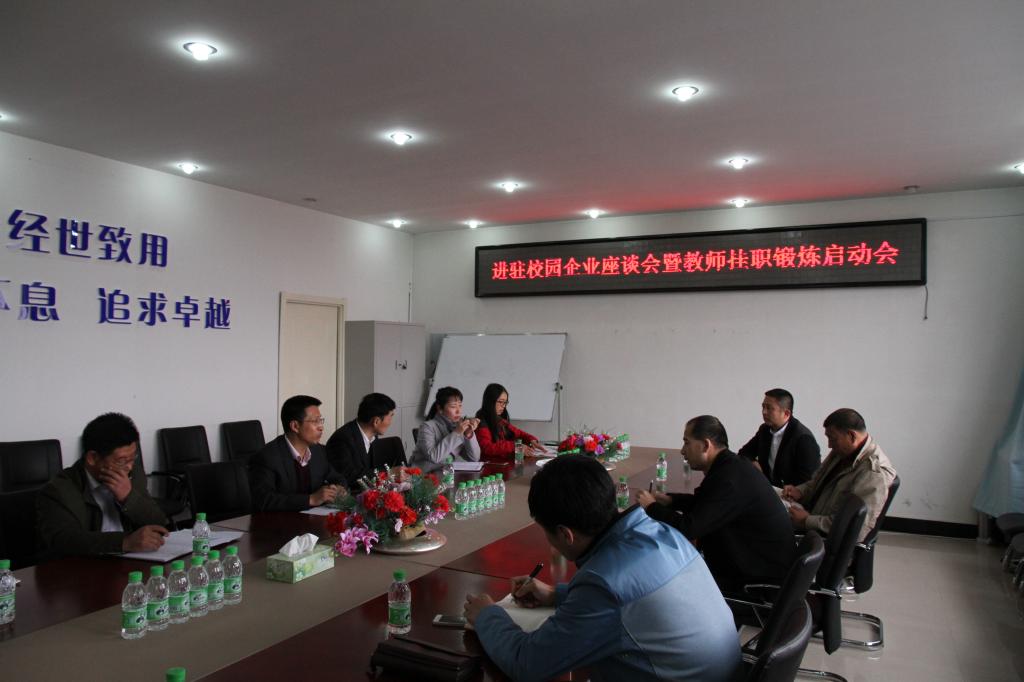 5月8日上午8点30分,太阳成集团tyc33455cc官网在第五教学楼召开了进驻校园企业座谈会及教师挂职锻炼启动会。大庆乐道俱乐部投资总经理徐向秋,大庆导引营销策划服务有限公司副总经理范海波,达内时代科技集团黑龙江分公司陈广益,大庆佳睿财务咨询服务有限公司张老师,应邀参加本次校企座谈会。会议由太阳成集团tyc33455cc官网院长张平主持,书记孔若东,副院长吴俊江及各专业系主任共同参加了此次座谈会。