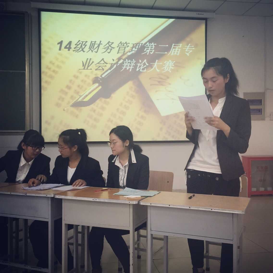 6月11日晚上,我校2014级财务管理专业举办了以“会计信息失真,德治和法治哪个更有效”为主题的辩论赛。