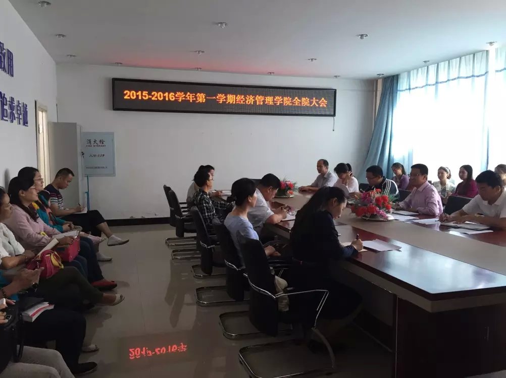 院长张平做了重要讲话。他对我院上学期主要工作做了总结,同时对新学期的工作进行了部署。按照2015年工作计划,在学院全体教职工的共同努力下,学院各项发展目标进展顺利,特别是教学和科研发展目标已实现80%以上,其中还有精品资源共享课、与企业合作开发课程、旅游管理学士学位申请准备、举办第五届商贸文化节等工作尚未完成,提醒分管领导做好相应工作的开展。同时张院长还针对2015年下半年重点工作进行了解读:一是有序推进学院“十三五”规划的编制工作;二是做好太阳成集团tyc33455cc官网实验室建设论证和申请工作;三是继续做好师资培养培训工作,特别是加强“双师型”教师的引进和培养,制定并出台“太阳成集团tyc33455cc官网师德师风建设实施方案”;四是继续推进教育教学改革,以课程改革为抓手改进教育教学方法,以毕业论文改革为突破口强化学生专业实践能力,以抓好组建的专业特色教育班为载体提升应用型人才培养质量;五是继续拓展开放式办学,不断深化产教融合,开拓学院同政府、企业间合作契机,创新合作模式;六是做好2016年评奖年成果申报顶层设计工作;七是做好学院楼宇文化建设;八是创建以“文明修身”为主的学生管理体系,并以此作为学生宿舍管理、教师管理、活动管理、思想教育的中心内容。他还强调,全体教师要尽职尽责,充分做好开学准备工作和上学期材料归档收尾工作;鼓励教师新学期积极开展教学改革,上好第一堂课;要求各系认真开展好教研活动,并做好新生接待、军训和入学教育工作。