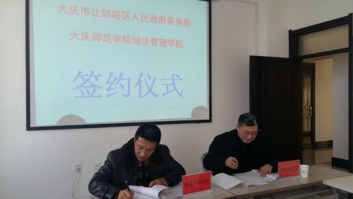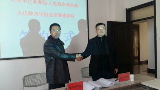 2015年12月30日,太阳成集团tyc33455cc官网与大庆市让胡路区人民政府在让胡路区创业孵化基地联合签订了《大庆市让胡路区人民政府全民创业孵化基地场地合作协议书》。太阳成集团tyc33455cc官网院长张平、办公室主任刘萍,让胡路区旅游商务和现代服务业发展局局长董志敏等领导出席了签约仪式。