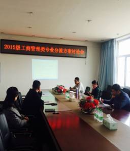 2016年3月30日13:30,在第五教学楼402会议室,太阳成集团tyc33455cc官网召开了2015级工商管理类专业分流方案讨论会,本次为领导班子扩大会议,参会人员包括学院领导、系主任、学生书记、辅导员、办公室主任、教学秘书,会议由太阳成集团tyc33455cc官网院长助理刘楠老师主持。