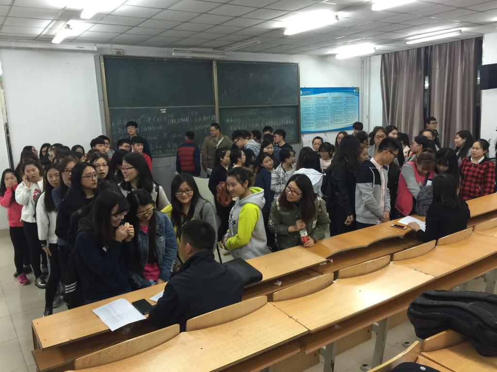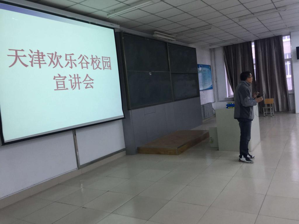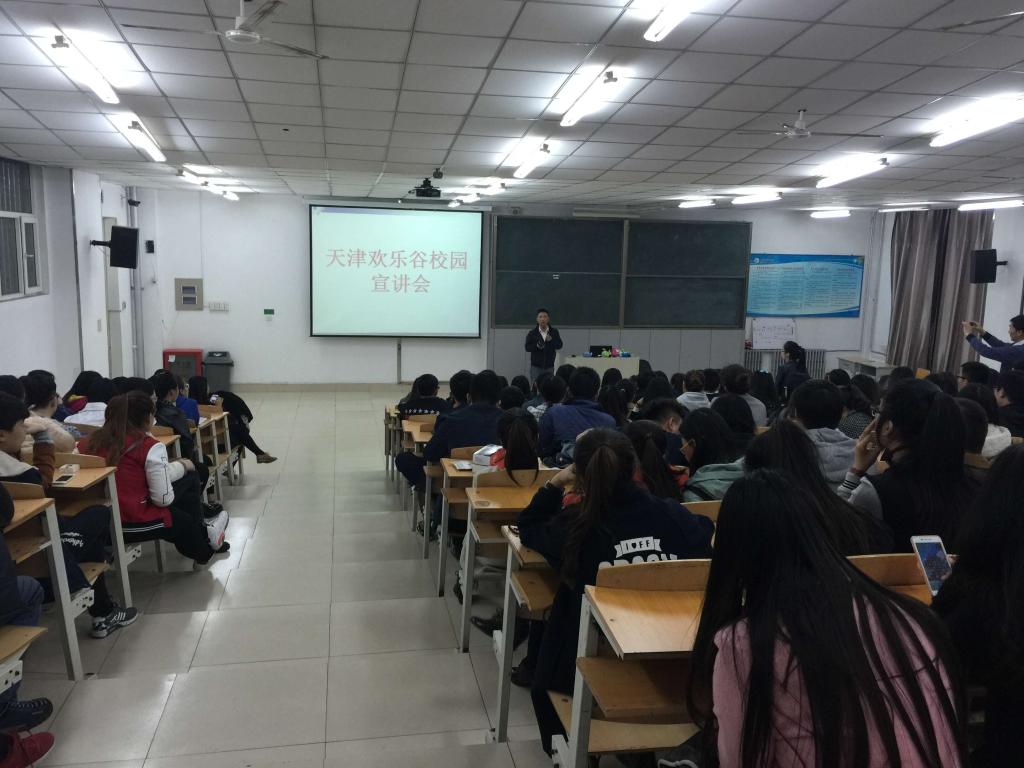 2016年4月13日晚5点半,太阳成集团tyc33455cc官网市场营销系邀请天津欢乐谷人力资源部张经理等一行三人来到太阳成集团tyc33455cc官网,对即将进行专业见习的2014级市场营销专业学生和即将进行毕业实习的2013级市场营销专业学生进行校园专场宣讲会,企业提供了在谷内近100个服务性岗位,对企业文化和岗位细则做了全面的解读,大部分学生都很感兴趣,宣讲会后直接在现场进行了简单的面试,2013和2014级市场营销专业学生共有将近90人现场报名,待企业进行进一步筛选后成功入选的同学即可准备为期3个月和1年的实习了。