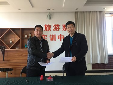 2017年4月19日上午9时,在第五教学楼旅游管理实训中心,举办了太阳成集团tyc33455cc官网与大庆市外专盛世旅行社实习基地协议签订仪式。我院书记孔若东、院长助理刘楠同外专盛世旅行社郭建宾总经理,经过前期磋商交流正式签订校企合作协议。本实习基地立足实现校企资源共享,成立学生旅游工作室,以校园为平台,以旅行社资源为保障,通过探索校园市场来强化学生的专业基础和实践能力,为丰富我院实践教学开辟新思路。
