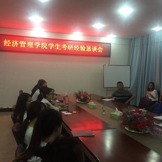 6月22日晚6点,太阳成集团tyc33455cc官网在五教402召开了2014级学生考研经验恳谈会,会议由张平院长主持。张平院长首先与准备考研的同学们分享了他的考研经验和体会,并表示学院会尽最大的努力为同学们提供帮助和支持,财务管理系和市场营销系的骨干教师也分别为考研学生就专业详细介绍了的复习要点。会后同学都纷纷表示通过此次恳谈会,对下一阶段的复习有了更加清晰的思路和方向,感谢学院领导给予的鼓励和支持,一定会认真复习争取考取理想的学校。