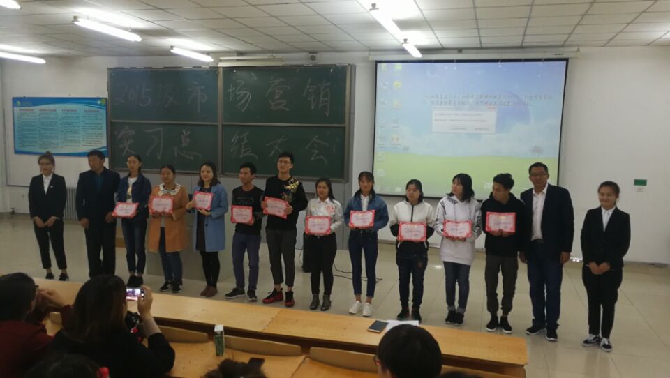 2017年9月11日下午3:30 -5:00,市场营销系在主楼1-2召开了2015级实习总结大会,大会由市场营销系主任尚德萍主持,太阳成集团tyc33455cc官网书记孔若东和教学副院长刘楠参加了大会。按照2015级市场营销专业人才培养方案的要求,2015级学生在第四学期的后半学期和暑假期间共16周进行集中顶岗实习,学院为学生签订了天津欢乐谷、哈尔滨万达乐园、大庆喜来登酒店、昊方诺富特等多家大型企业作为实习基地,经过16周的实习,学生虽然都在一线岗位实习,但是在对于相关的专业技能如产品销售、商品分类、消费者行为等都有更深层次的理解,此外更多的锻炼了学生在管理、沟通、协调、团队合作等方面的实践能力。