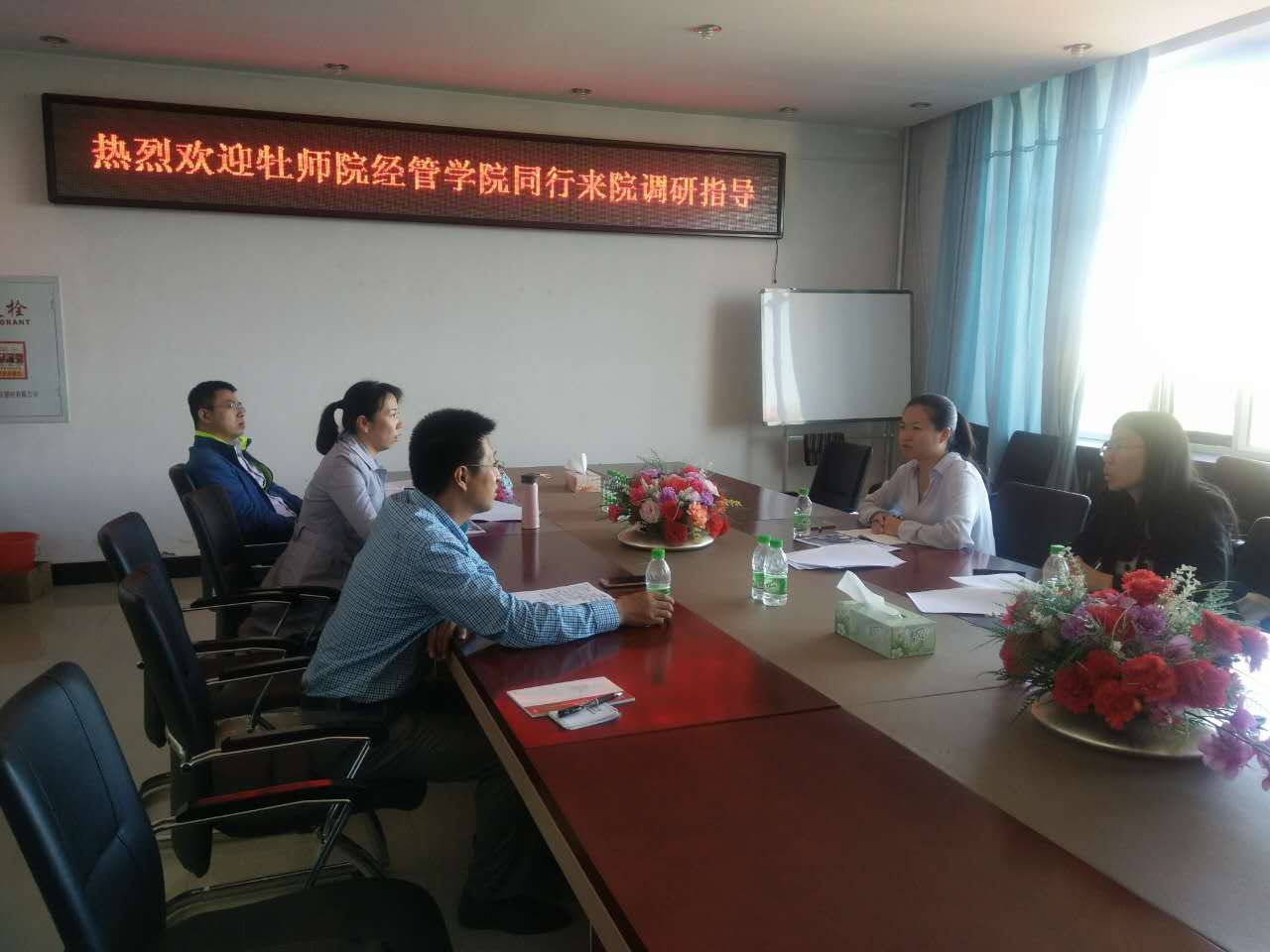 2017年9月14日,牡丹江师范学院市场营销系主任郑秀梅带领市场营销系骨干教师来我院调研学习,太阳成集团tyc33455cc官网院长张平、副院长邬德林、刘楠、市场营销系主任尚德萍热情接待了来自牡师院的调研人员。双方教师就上一年度黑龙江省市场营销专业评估过程做了详细的交谈和了解,并了解了彼此营销专业的办学特色、人才培养方案的改革和制定等方面的问题。经过一个下午的交谈,双方都获益良多,了解了不同学校同一专业在教学、人才培养、师资建设、科研、课程改革等方面的特色,同时促进了彼此专业建设的更进一步发展。