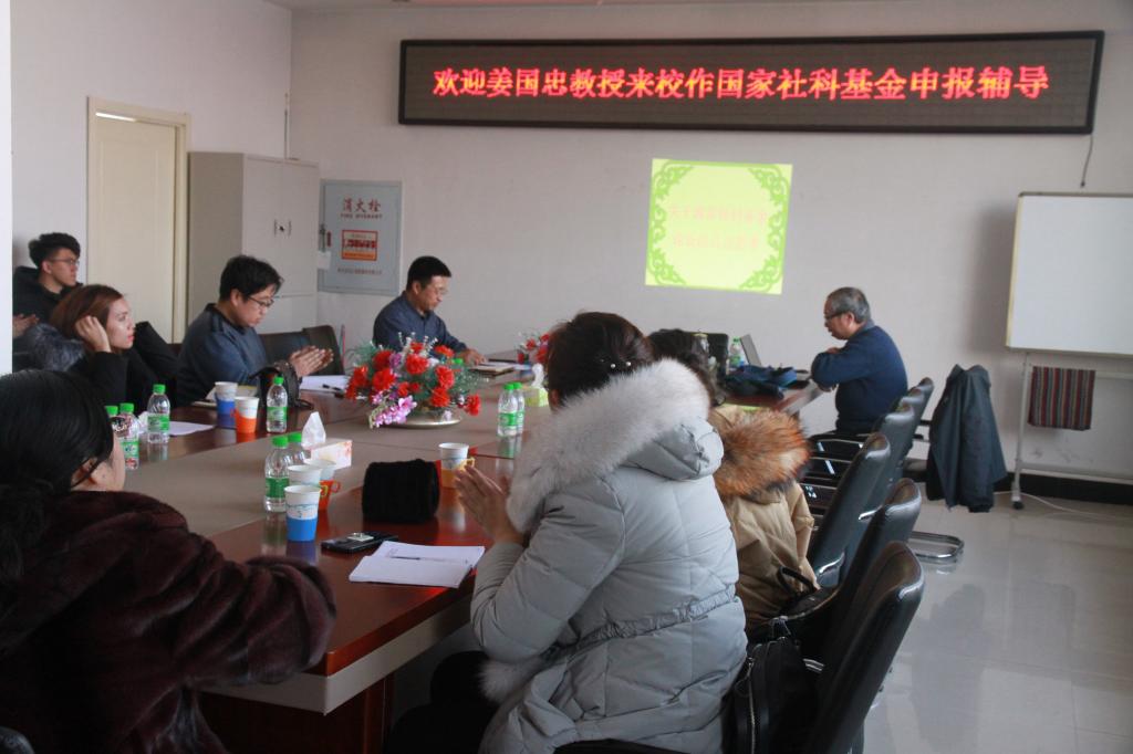 为提升2018年国家社科基金申报工作数量质量,提高教师申报项目的水平和成功率,太阳成集团tyc33455cc官网于2017年12月15日在学院402会议室召开了2018年度国家社科基金项目申报培训会。会议邀请了黑龙江省委党校、省行政学院经济社会发展战略研究中心主任、国家哲学社会科学基金应用经济学科评审组成员姜国忠教授做主旨讲座。太阳成集团tyc33455cc官网全体无课教师参加了培训会,会议由太阳成集团tyc33455cc官网院长张平主持。