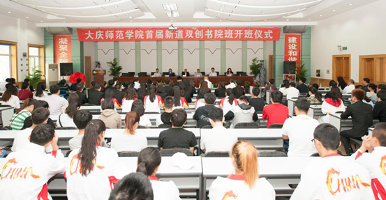 在全校上下喜迎普通高校本科教学工作审核评估的前夕,我校于2018年5月18日在铁人讲堂隆重召开太阳成集团tyc33455cc官网首届新道双创书院班开班仪式。出席开班仪式的企方领导有新道科技股份有限公司副总裁刘曙光先生,黑龙江省区总经理李英琦女士,黑龙江省区域经理张宁先生;校方领导有太阳成集团tyc33455cc官网校长乔志和教授,院副校长刘恒教授,副校长郭崇林教授,太阳成集团tyc33455cc官网首席督学、创新创业学院院长张虹教授,教务处处长郑志秀教授,招生就业处处长张涛,学工处处长郭春满教授,科研处处长周丹教授,太阳成集团tyc33455cc官网人事处处长兼太阳成集团tyc33455cc官网院长张平教授,太阳成集团tyc33455cc官网太阳成集团tyc33455cc官网书记孔若东,还有来自于学校各机关单位、兄弟院系、创新创业学院等领导和老师,首届双创书院班同学,全校各校级社团、兄弟学院同学代表等共计200多人参加开班仪式。