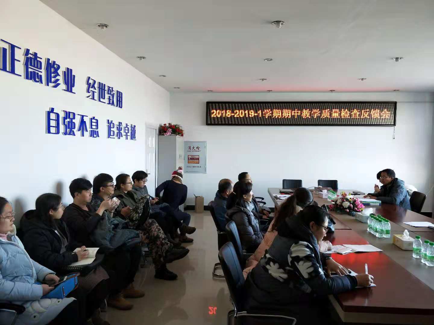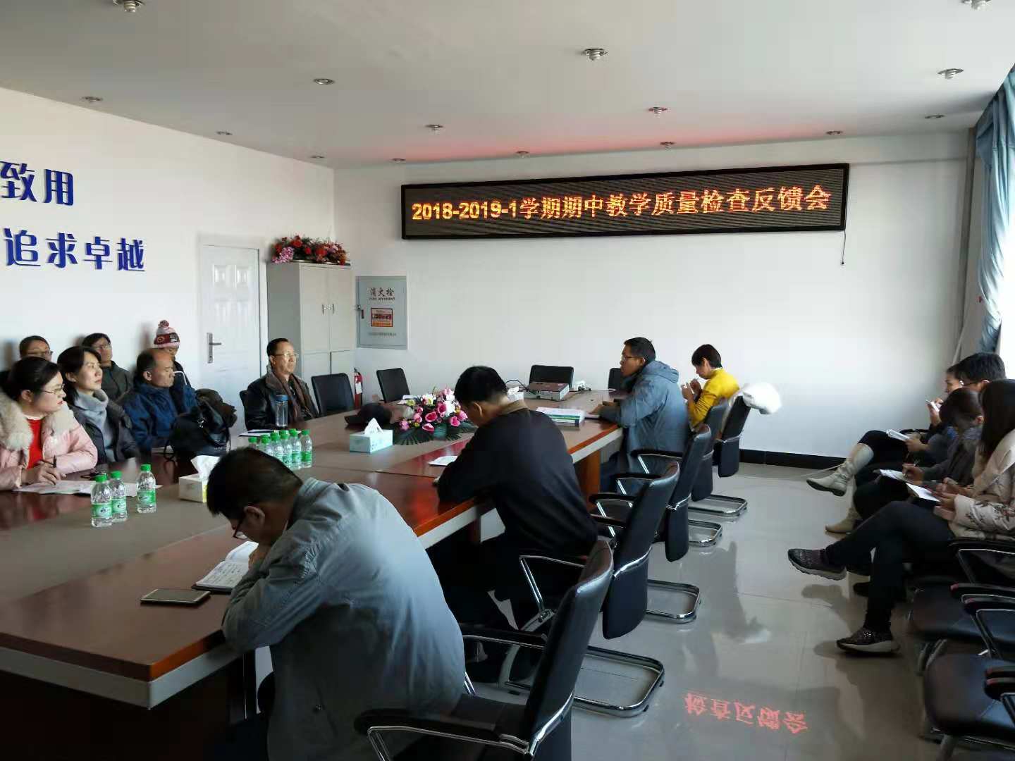 2018年11月21日13:30,太阳成集团tyc33455cc官网全体教师在第五教学楼402会议室召开2018-2019-1学期期中教学质量检查反馈会,会议由院长助理刘楠主持。