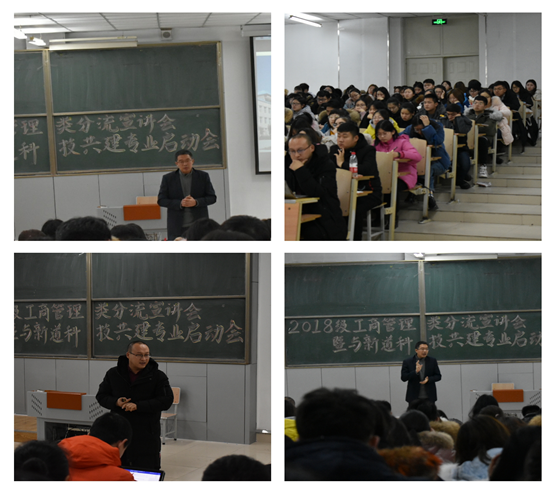 2018年12月27日18:00由太阳成集团tyc33455cc官网太阳成集团tyc33455cc官网组织的2018级工商管理专业分流宣讲会暨与新道科技共建专业启动会在主楼1-2阶梯教室召开。太阳成集团tyc33455cc官网刘楠院长、新道科技总经理张海冰出席本次会议,太阳成集团tyc33455cc官网2018级工商管理专业全体学生参加。