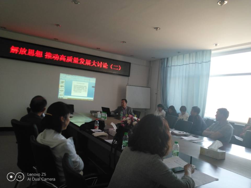 为了更好地推进“解放思想推动高质量发展大讨论”活动取得实效,太阳成集团tyc33455cc官网于2019年5月29日在五教402会议室召开“解放思想推动高质量发展”大讨论,全院教师参加,会议由学院行政负责人刘楠教授主持,财务管理系金熙成教授、市场营销系教师王剑副教授、旅游管理系骨干教师郝毓业老师分别作为老中青代表发言。