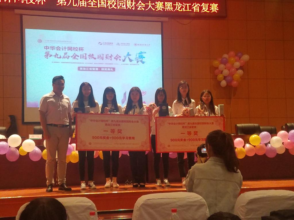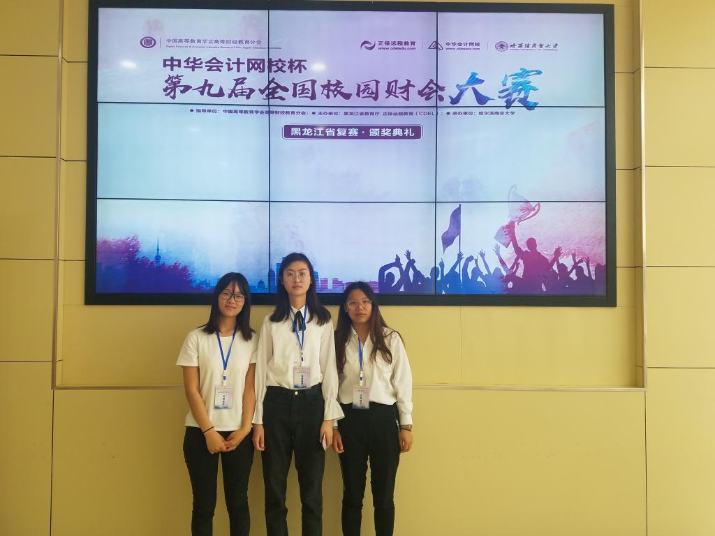 2016年6月2日“中华会计网校杯”第九届全国校园财会大赛黑龙江省复赛在哈尔滨商业大学举行,共有24所高校参加了比赛,大赛设特等奖1个,一等奖2个,二等奖5个,三等奖7个,经过激烈地角逐,我校财务管理专业学生姜苑、王欢欢、杨璐三名同学组成的代表队获得一等奖,实现了我校学生在该项比赛中的新突破。从初赛到复赛,三位同学在指导老师的帮助下不怕困难,刻苦钻研,比赛中三名同学沉着冷静,默契配合,很好地发挥了自己的水平。财会大赛加强了财务管理专业学生的自信心,激发了同学们的学习热情,也加深了学生对于专业知识的理解。希望财务管理专业的同学们继续努力,在以后的比赛中再创佳绩。