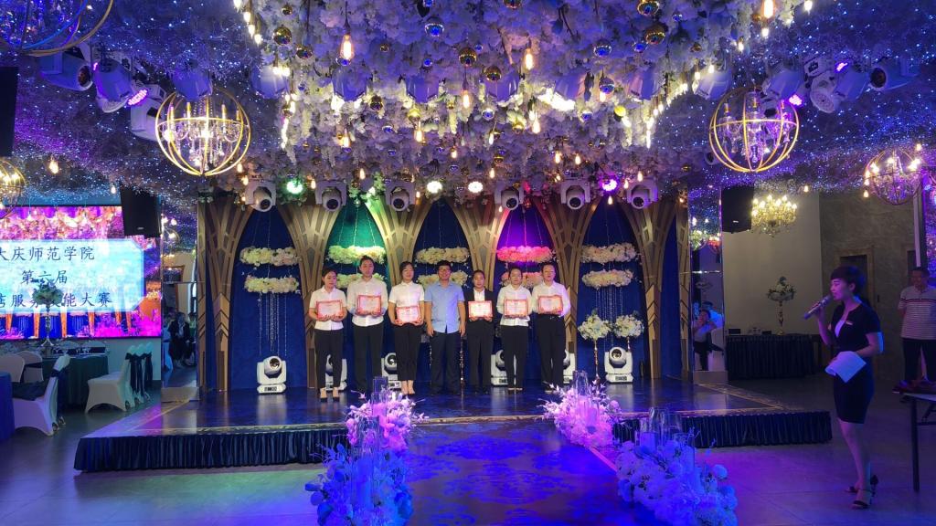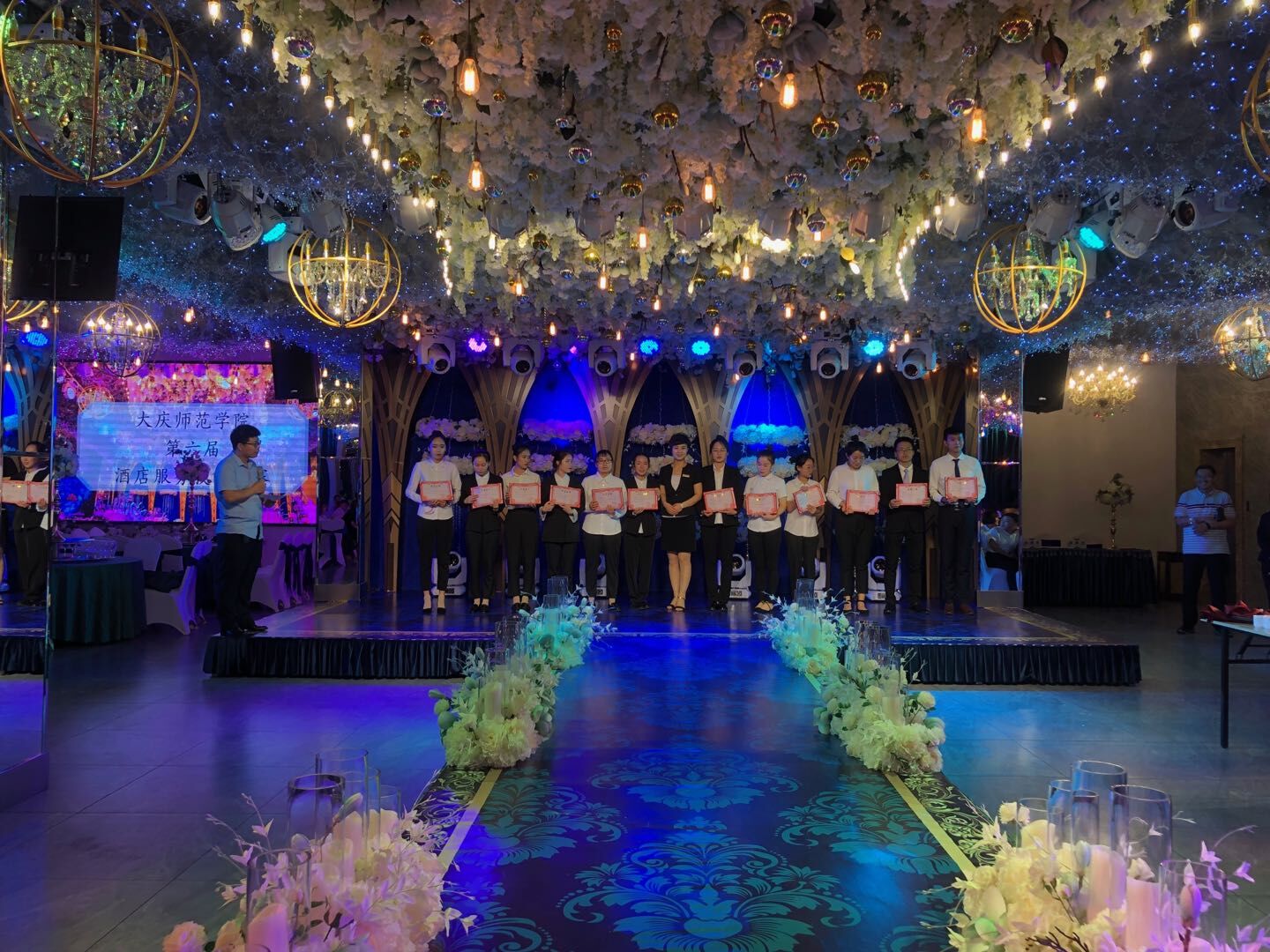 太阳成集团tyc33455cc官网第六届酒店服务技能大赛经过近一个月的准备、理论讲授、实操训练于2019年6月27日上午10时在西华酒楼开赛,此次大赛由2018级旅游管理专业和专升本全体学生共计82人参赛。大赛从仪容仪表、站姿、走姿、托盘、铺台布、摆十人台、折口布花等环节进行考核,经过激烈的角逐,共产生一等奖三名、二等奖六名、三等奖12名。此次大赛通过讲学练赛相结合的方式进行,学生提升了实践技能,增强了对酒店服务的理解和认知。