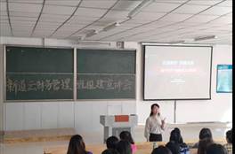 在宣讲会上,冯建中总监就如今市场发展趋势及就业形势向同学们介绍了云财务管理的重要性,由“为什么要选财会”这个问题引入,再谈到财会的工作和工作前景。同时,冯总监给同学们普及了一个新的概念:“云财务管理会计师”。随后,冯总监讲到本专业是为了培养适应社会主义市场经济建设需要以及大数据、人工智能、移动互联网、云计算等背景下企业转型对会计人才的需求,分析了云财务会计师相比较于普通会计师的优势。宣讲会的最后,张海冰经理解答了财务管理专业的同学们的疑惑和问题,让同学们对云财务管理会计师和该实验班有了更近一步的了解。
