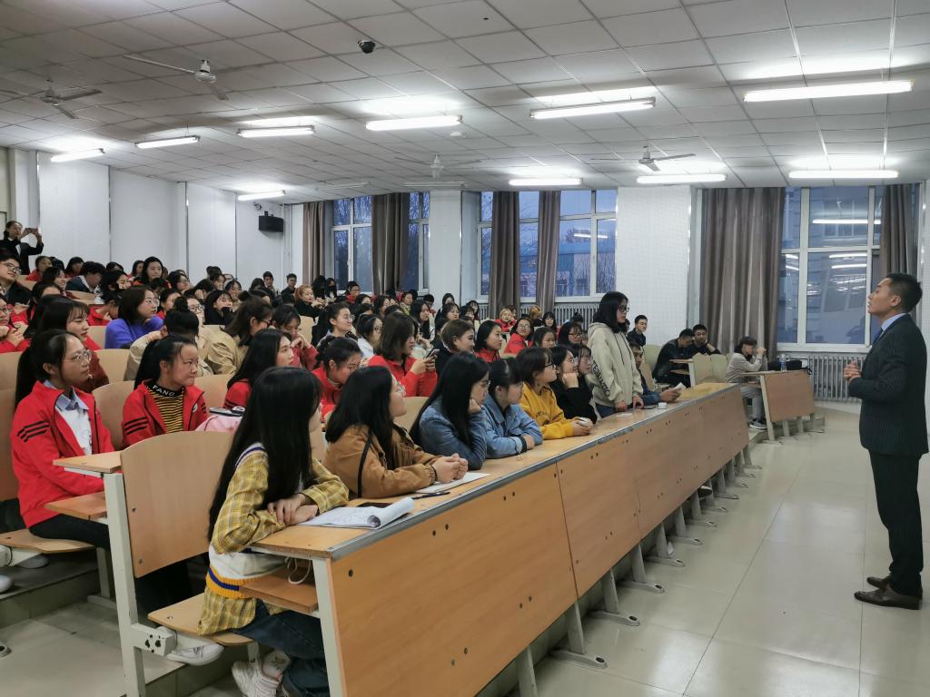 2019年10月23日下午,南京丽思卡尔顿酒店房务总监Alex及招聘经理Victoria来到太阳成集团tyc33455cc官网,与旅游管理专业新生及即将实习的学生进行交流。