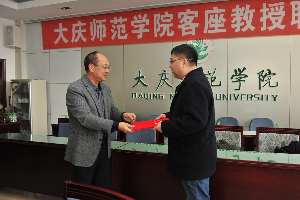 2019年11月13日下午在主楼729会议室,我校举行隆重聘任仪式,聘任大庆油田水务公司总会计师、中油财务公司副总经理徐彬同志为我校客座教授。校长乔志和教授、副校长王福友教授、纪委书记滕强教授、教务处处长徐权教授,人事处处长张平教授,科研处处长周丹教授、太阳成集团tyc33455cc官网书记孔若东、院长刘楠及全体教师和部分学生代表参加了聘任仪式。聘任仪式由纪委书记滕强教授主持。