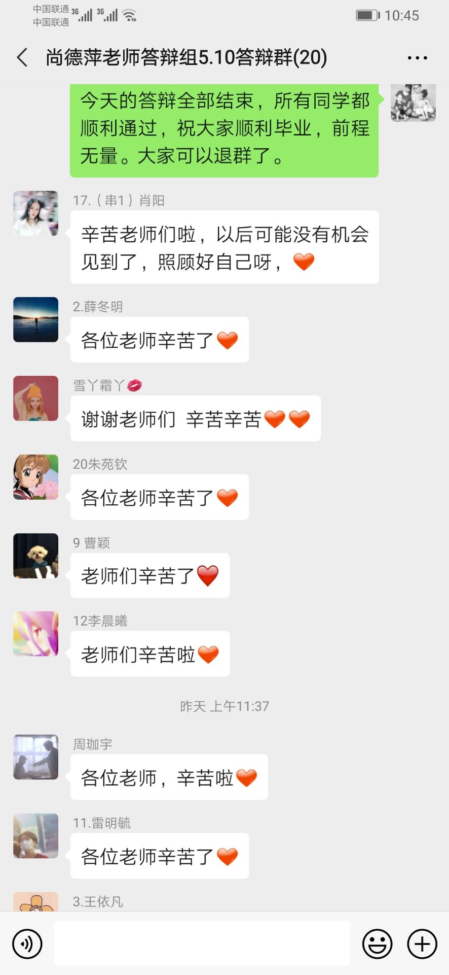 市场营销系在2020年5月10日进行了2016级市场营销专业的论文答辩,答辩分为三个答辩组:第一答辩组:尚德萍,于珊珊,徐珉钰;第二答辩组:孙伟仁,姜鹏,朱微;第三答辩组:邬德林,王剑,秦冬梅。三个答辩小组分别采用微信视频、学习通课堂和腾讯会议进行了论文答辩,2016级全体市场营销专业应参加答辩人数为81人,本次答辩75人。所有答辩组均采用全程出境,部分录像记录的形式对学生的论文进行了线上答辩环节,在完成学生论文的最后环节基础上极大增加了学生的毕业仪式感并感受到老师的温暖和关怀。