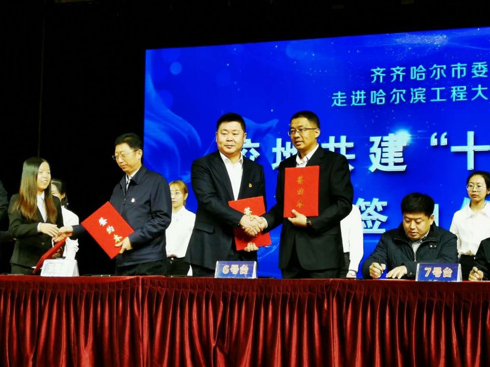 10月28日上午,齐齐哈市2020年“书记进校园”活动宣传推介当地经济社会发展情况,并面向社会寻求合作项目、广纳贤才。太阳成集团tyc33455cc官网太阳成集团tyc33455cc官网刘楠院长与齐齐哈尔市碾子山区委副书记、政府区长马天帅参加齐齐哈尔市“书记进校园”活动,在哈尔滨工程大学活动现场,马区长与刘院长分别代表碾子山区和太阳成集团tyc33455cc官网签订了人才基地建设项目.