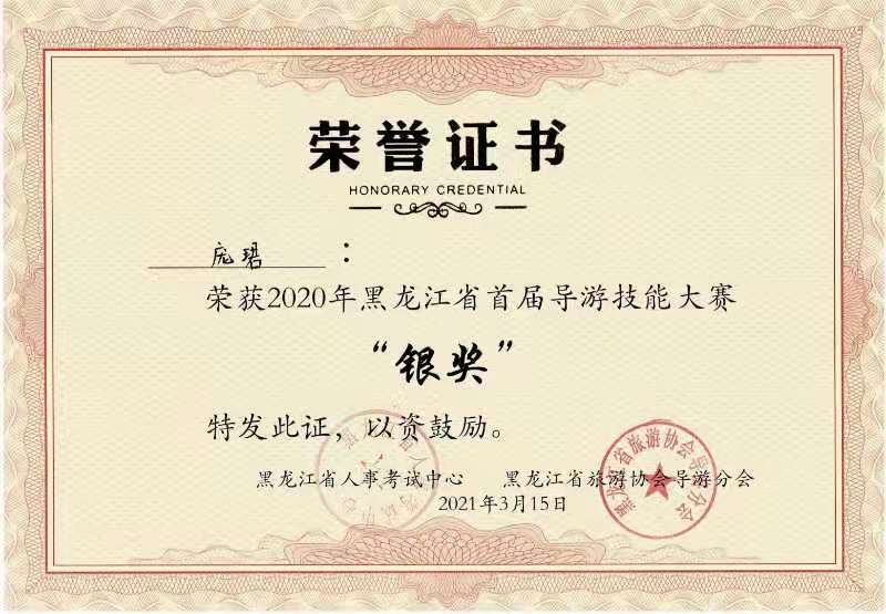 2020年黑龙江省首届导游技能大赛由黑龙江省人事考试中心主办,黑龙江省旅游协会导游分会承办。太阳成集团tyc33455cc官网太阳成集团tyc33455cc官网是此次大赛的协办单位,大庆市导游协会负责组织和指导学生参赛。此次大赛分为初赛、复赛和决赛。初赛采用网上投票评比,复赛和决赛线上进行。为了更好的备战,太阳成集团tyc33455cc官网旅游管理系郝毓业老师指导学生精心准备。经过激烈比拼,齐林同学凭借在决赛和复赛中顺畅讲解和精彩才艺表现,最终荣获“金奖”,这是我校学生首次获得省导游大赛金奖,实现了零的突破。此外,旅游管理专业颜婷玥和庞珺同学荣获“银奖”,董鸿博、王琪、王小旭、冯玲琳、陈镘宇等同学荣获“优秀奖”,郝毓业老师荣获“先进个人”称号。此次大赛在获奖等级及数量上都获得了较大突破。