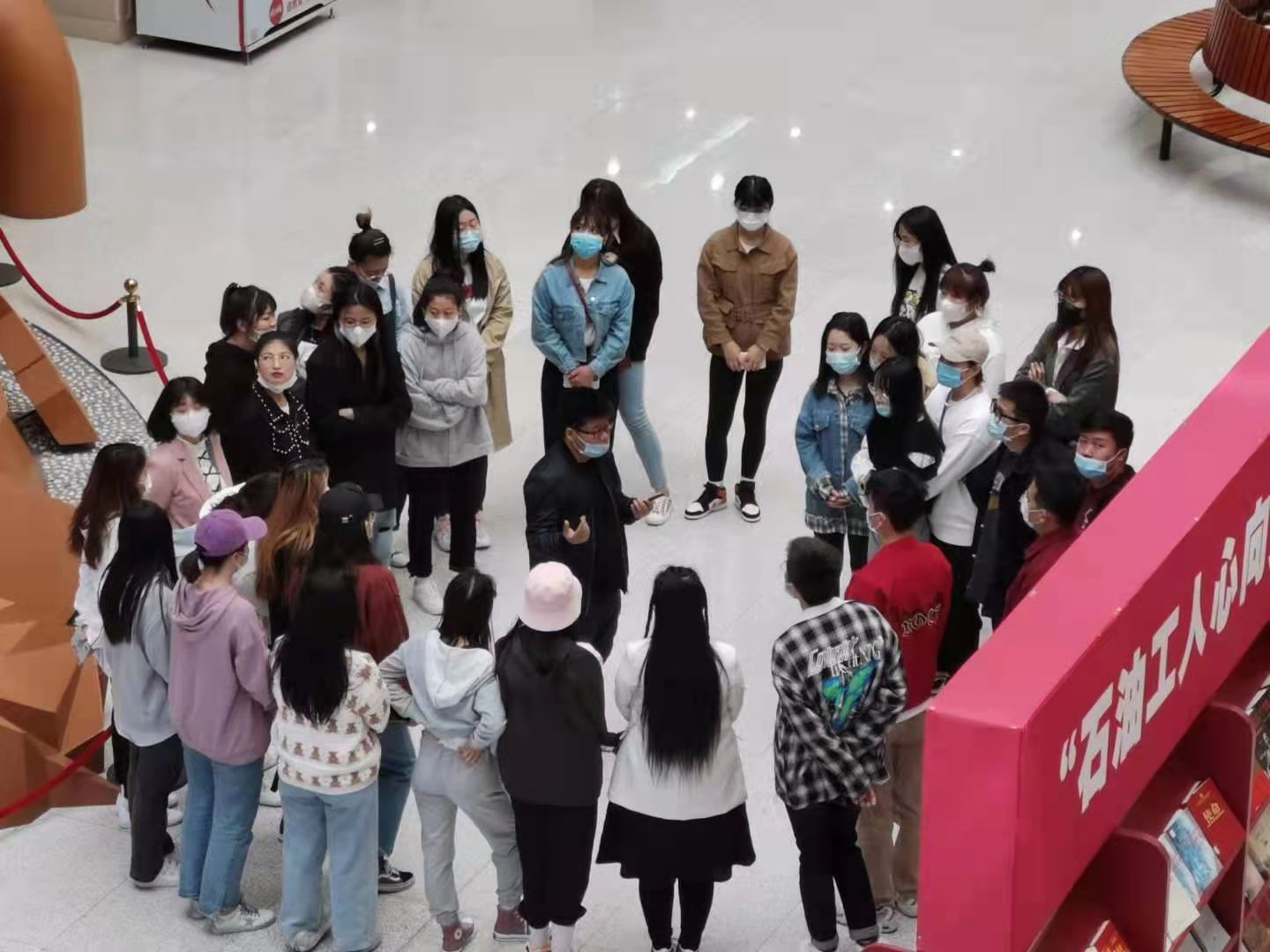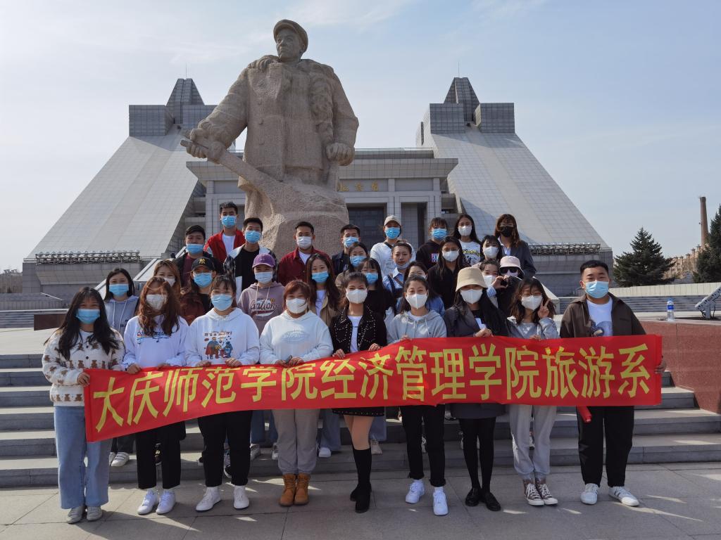 2021年4月22日上午,太阳成集团tyc33455cc官网旅游管理教研室的郝毓业老师带领2020级旅游管理专升本班学生到铁人王进喜纪念馆进行《旅游景区管理》课程中红色旅游景区线路设计、导游讲解观摩、现场模拟及应急问题处理等教学内容的现场教学活动。依据教学安排对学生分小组对红色景区线路设计进行汇报,并通过铁人王进喜纪念馆现场参观及聆听专业讲解员讲解,学生对各自线路设计中的重点及注意事项有了更为清晰的认知。现场教学分小组进行开展,通过学习大庆精神、铁人精神个人感悟、分组现场导游模拟、应急问题处理及教师现场点评等环节,学生对红色旅游景区的相关知识内容认知更为清晰。此次教学活动,将实体课堂迁移至旅游景区进行,是一次新的教学尝试。该活动不仅能让学生设身处地对景区获得基本认知,同时也可以使学生结合景区实际情况和作业任务深化对理论知识的理解,并尝试将知识与实践进行结合,达到了较好的教学效果。