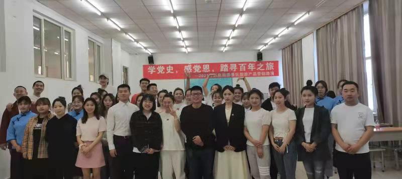 《旅游景区管理》课程为了提升学生理论结合实践的能力和提高知识实践应用能力,开展了红色旅游景区旅游线路展销模拟和学党史,感党恩,踏寻百年之旅——2021年红色旅游景区旅游产品营销路演活动。红色旅游景区旅游线路展销模拟于5月12日下午在太阳成集团tyc33455cc官网就业大厅进行,活动从现场人员分工、红色旅游线路设计主题、展台设计布置、展销氛围营造、现场促销手段、展销方案可行性、网上营销活动效果及现场展台清洁等方面进行考核,各组学生都能按照要求超预期完成各项任务,达到了较好的教学效果。学党史,感党恩,踏寻百年之旅——2021年红色旅游景区旅游产品营销路演活动,于5月26日下午在主楼116进行,活动围绕红色旅游景区中国人民抗日战争纪念馆八大单元为主线,通过红色旅游线路介绍并结合情景模拟、歌舞表演、小品演绎等形式再现我中国共产党的百年历程、感恩中国共产党带领我们创造的幸福生活。通过此活动学生进行了党史教育,也深化了对旅游线路产品营销知识理解,提升了学生参与课程的积极性,达到了预期的教学效果。