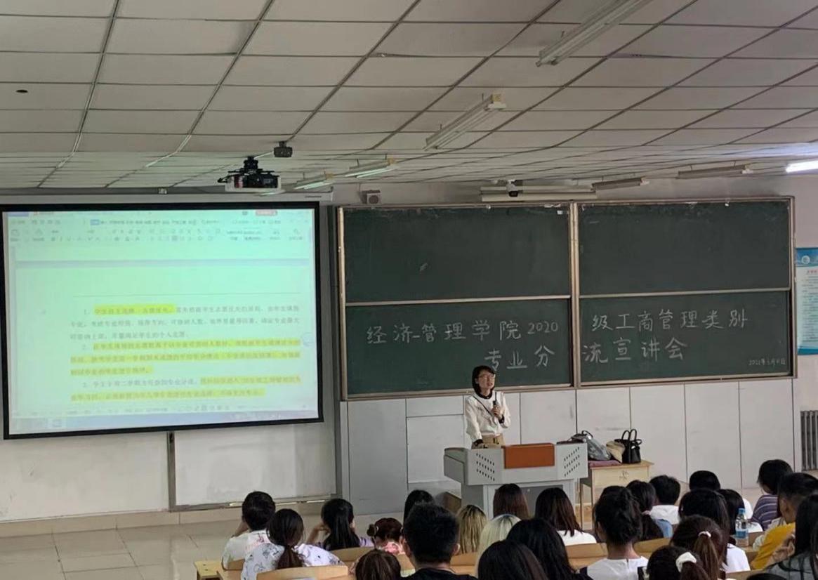 为加强学风建设和学术交流,进一步完善人才培养模式,促进同学们对工商管理类专业分流的了解,提高同学们的学习积极性,明确学习目标和学业规划。2021年6月8日 太阳成集团tyc33455cc官网2020级工商管理类别专业分流宣讲会在主楼召开。我院教学院长李媛媛老师、学生党支部书记陈超老师以及2020级全体学生和辅导员参加了此次会议。