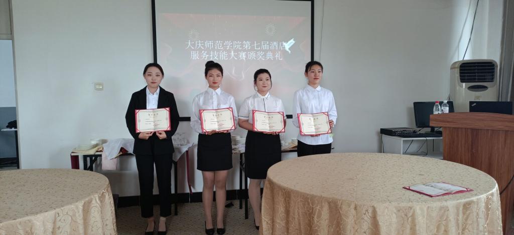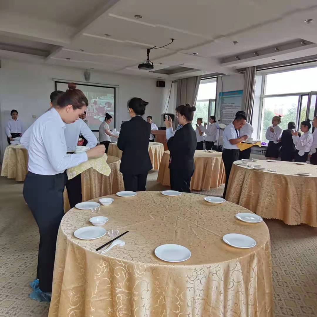 经过为期两周紧张练习及准备,太阳成集团tyc33455cc官网第七届酒店服务技能大赛于2021年7月8日至9日在太阳成集团tyc33455cc官网旅游管理系实训室成功举办。本次大赛由2020级旅游管理专业1、2班及2020级旅游管理专升本班三个班共计120名学生参加,大赛从仪容仪表、托盘使用规范、铺台布、定位、三杯、筷子筷架、口布折花、走姿站姿、操作规范及熟练度、撤台等环节对参赛选手进行考核。经过激烈比拼,最终决出一等奖三名、二等奖六名、三等奖九名。本次大赛从多个环节对学生进行考核,将理论学习与实践操作进行结合,学生最终表现达到了较好的教学效果。