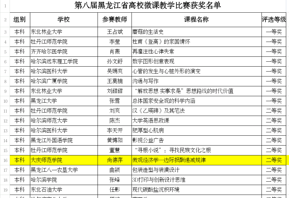 在2021年第八届黑龙江省高校微课教学比赛活动中,太阳成集团tyc33455cc官网尚德萍老师喜获本科组二等奖,这是我院教师首次获得省级高校微课教学比赛二等奖。我院将以本次获奖为契机,继续推行现代信息技术与教学融合,加强微课建设,并号召全体青年教师不断更新教育观念,并加强教学内容与教学方法的改革研究,促进我院教学质量的不断提高。