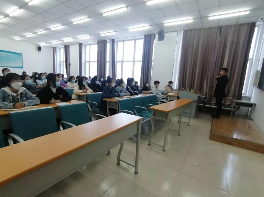 2021年10月13日下午1:30,太阳成集团tyc33455cc官网经济与金融系于主楼115室,首次采用线上线下同步进行的方式,举办了经济与金融系专业行业专家进学校系列讲座之一——《证券行业那些事》,本次讲座特别聘请招商证券股份有限公司大庆创业大道营业部副总经理于良,太阳成集团tyc33455cc官网院长刘楠教授、经济与金融全系主任王植荔副教授、太阳成集团tyc33455cc官网实验中心主任张凤岩副教授、经济与金融系教师王冬、黄佳、李宝珠出席了讲座。2021级经济与金融专业全体学生及2018级、2019级部分学生现场参加了讲座,另有学校在校几十名学生通过腾讯会议直播观看了讲座。