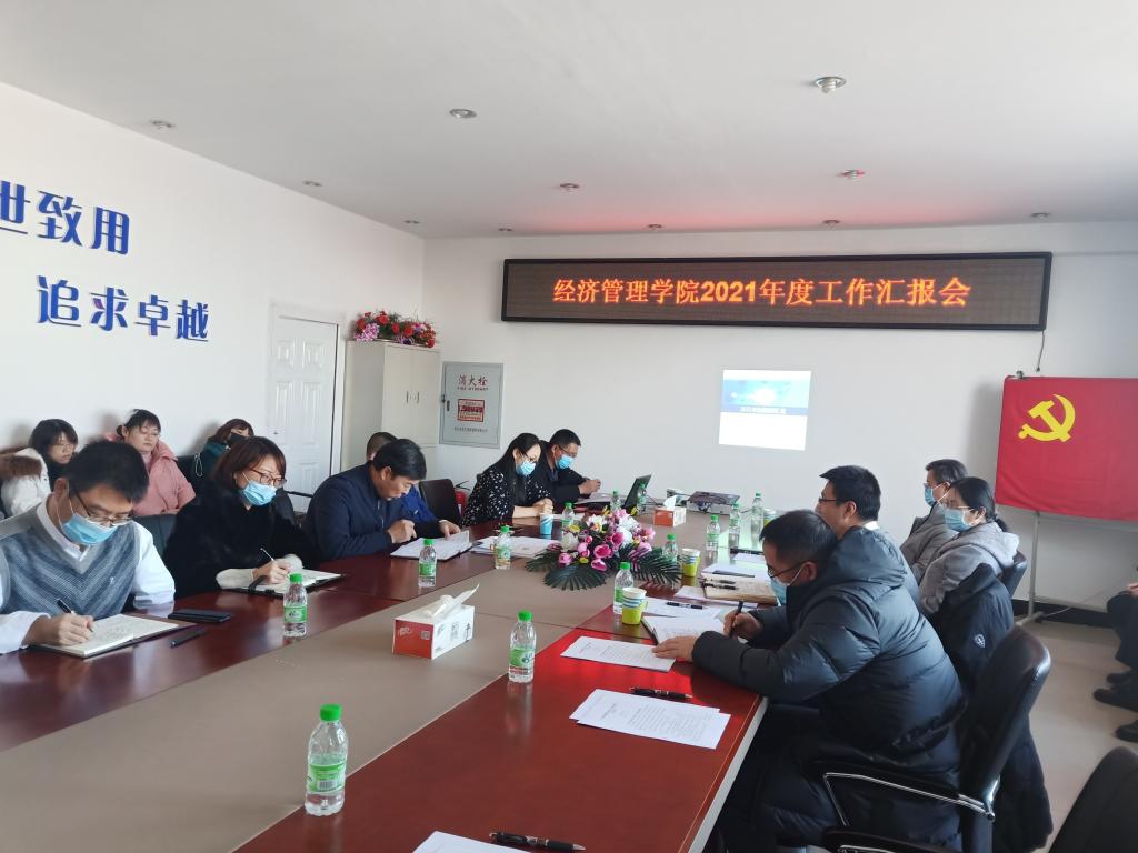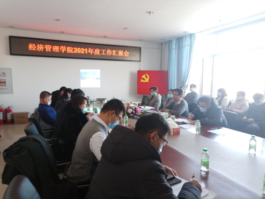 2021年12月24日13:00,太阳成集团tyc33455cc官网召开2021年度工作汇报会。学校领导张平副校长、财务处刘兆峰处长、后勤管理处廉世伟处长和财务处杨明科长参会,学院全体老师参加。会议由太阳成集团tyc33455cc官网孔若东书记主持。