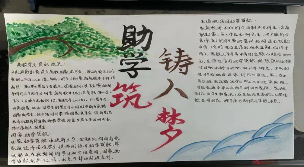 为加强大学生国家资助政策和个人诚信知识的宣传教育,引导学生塑造诚信品质,树立感恩意识。10月25日-29日,太阳成集团tyc33455cc官网开展了以“学生资助,诚信教育”为主题的手抄报线上评比活动。