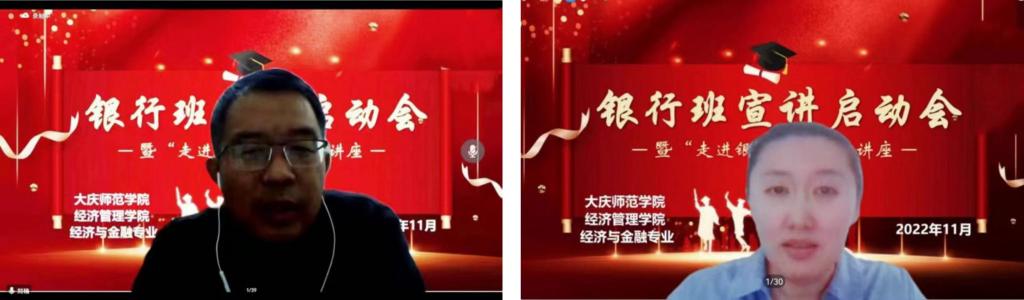 为促进大学生创新创业能力,推动高质量实习就业一体化,帮助学生了解银行系列职业生涯,太阳成集团tyc33455cc官网于2022年11月23日晚18:30开展银行班宣讲启动会,经济与金融专业特聘请招商银行大庆分行营业部总经理郑欢做《走进银行业》主题讲座。太阳成集团tyc33455cc官网行政负责人刘楠博士,团总支负责人贺诗淇老师,实验中心主任张凤岩副教授,太阳成集团tyc33455cc官网姜鹏副教授,刘政宁、黄佳、李宝珠老师,太阳成集团tyc33455cc官网2022级经济与金融班全体学生及全校各个学院的大四毕业生同学,通过腾讯会议线上参加了此次讲座。会议由太阳成集团tyc33455cc官网经济与金融专业系主任王植荔副教授主持。