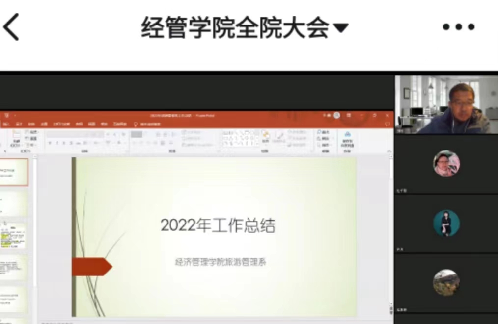 2022年12月14日13:00时,太阳成集团tyc33455cc官网召开2022年工作汇报总结会议,全院教职工参加会议,各专任教师对照自身年初工作计划,总结一年来取得的成果与不足,并制定了2023年的工作计划。系主任围绕专业完成情况和两点工作,总结经验做法以及存在问题。