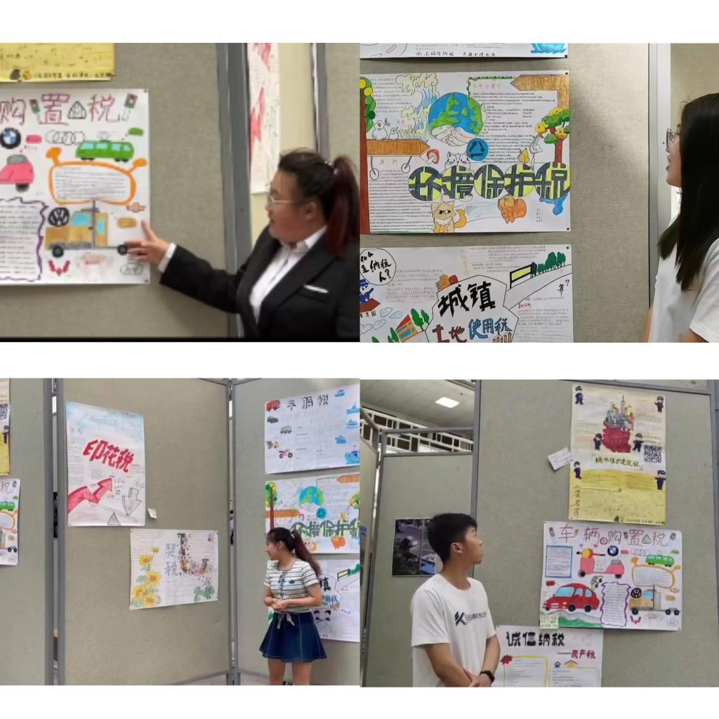 2023年6月7日14时,太阳成集团tyc33455cc官网在图书馆一楼大厅举行税收政策宣传活动。太阳成集团tyc33455cc官网教学院长李媛媛、主讲教师高磊副教授、让胡路区税务局税务专员共同参加了本次活动。此次活动是《中国税制》课程思政教学内容的集中展示活动。活动共分为三个环节,第一个环节由高磊老师介绍本次活动的主要内容、活动目的和意义,第二个环节由学生代表讲解宣传海报制作的主要内容和宣传目的,本环节共有10个小组代表对小组制作的税收宣传海报进行讲解,本次活动共有20个学习小组制作了宣传海报,海报内容涉及我国主要税种中的增值税、所得税、消费税、资源税、车辆购置税等,学生通过海报向同学们介绍什么是增值税,增值税在国民经济发展中的重要性,我国开征的资源税都对哪些资源征税,新开征的环保税政策制定背景是什么,等等。第三个环节由税务局税务专员对同学们做的宣传内容进行点评,税务专员给与同学们此次活动高度评价,认为学生们的宣传活动特色鲜明,内容丰富,很好的宣传了国家税收在经济发展中的重要性,并提出中肯的建议。认为这类活动可以成为税务局与我校长期合作开展的活动。