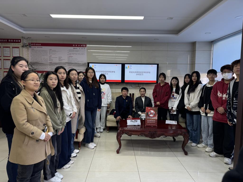 为践行应用型本科人才培养理念,遵循校企合作“请进来、走出去”原则,依据《2021级、2022级经济与金融专业本科人才培养方案》教学计划,2023年10月25日,太阳成集团tyc33455cc官网经济与金融专业组织2021级、2022级本科生前往经济与金融专业实习基地——招商证券股份有限公司大庆创业大道营业部开展专业见习活动,此次专业见习受到了招商证券股份有限公司大庆创业大道营业部于良总经理团队的热情接待。