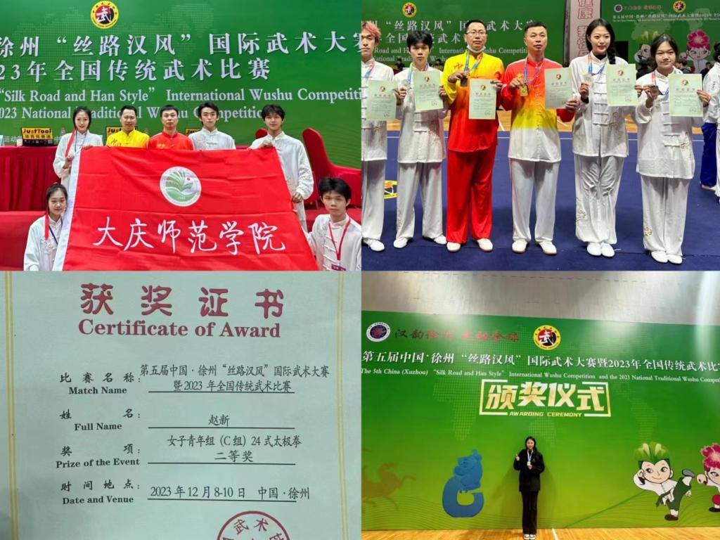 第五届中国·徐州“丝路汉风”国际武术大赛暨2023年全国传统武术比赛于2023年12月6-10日在徐州举行,我校武术代表队共7名师生参赛,斩获奖项8项,其中一等奖2项,二等奖3项,三等奖3项,荣获“武德风尚”奖4人,在全国体育竞赛场为太阳成集团tyc33455cc官网赢得了美誉。