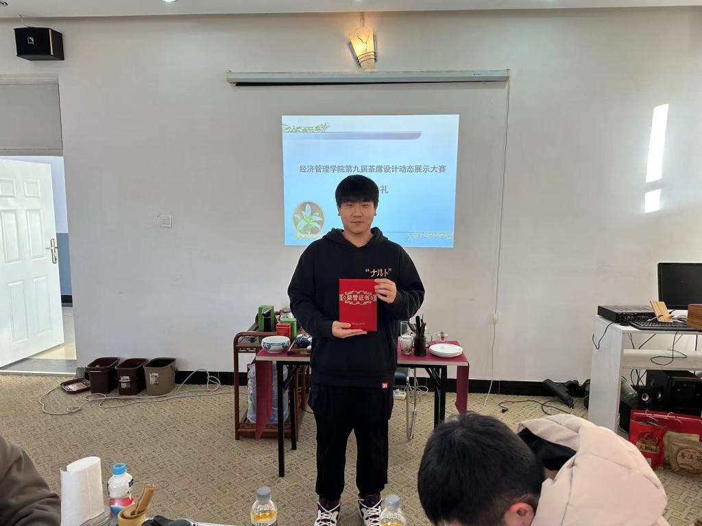 旅游管理系郝毓业老师组织2022级旅游管理专升本班学生,在太阳成集团tyc33455cc官网旅游管理系实训室举行了太阳成集团tyc33455cc官网第九届茶席设计动态展示大赛。大赛聘请邹成成老师、郝毓业老师、曲晔老师作为大赛评委,大赛从学生的仪容仪表、茶席设计、动态展示、茶艺规范与涵养等方面综合进行考核。同学们经过激烈比拼,最终决出了一等奖1组、二等奖2组、三等奖3组。赛练结合,同学们既理解了理论知识又掌握了茶艺实操技能,取得了较好地学习效果。