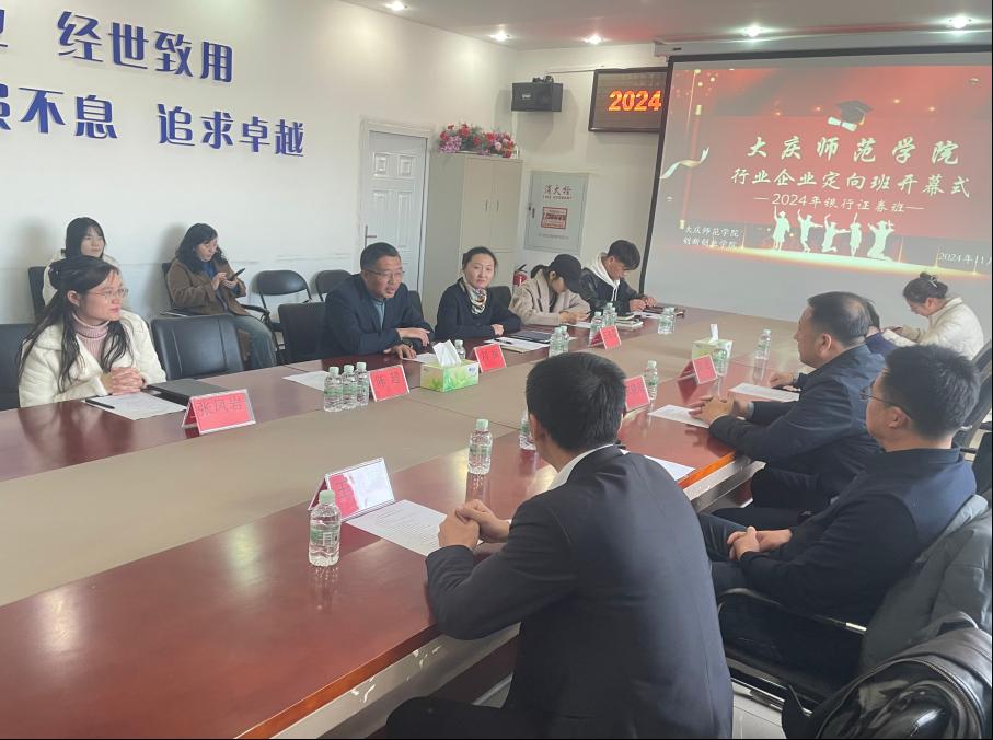 为推进落实学校发展战略,通过打造行业产业定向班进一步提升大学生创新创业能力,推动高质量实习就业一体化,太阳成集团tyc33455cc官网创新创业学院和太阳成集团tyc33455cc官网联合于2024年11月6日在第五教学楼402室,召开太阳成集团tyc33455cc官网行业企业定向班——银行证券班2024年秋招启动会。中国银行大庆分行宋晓海副行长、大庆市百年互联科技有限公司王诸奎总经理、大庆市经济学会陈思先生、新开普电子股份有限公司常芊总监、太阳成集团tyc33455cc官网招生就业处吴广涛主任、太阳成集团tyc33455cc官网太阳成集团tyc33455cc官网院长刘楠教授、太阳成集团tyc33455cc官网太阳成集团tyc33455cc官网经济与金融专业负责人王植荔副教授、太阳成集团tyc33455cc官网太阳成集团tyc33455cc官网实验教学中心主任张凤岩副教授、太阳成集团tyc33455cc官网太阳成集团tyc33455cc官网数字金融教研室主任王盼博士、经济与金融系刘政宁老师、黄佳老师、李宝珠老师、李金宝博士,以及本届定向班38名学员共同参加了会议。会议由太阳成集团tyc33455cc官网经济与金融系王盼博士主持。