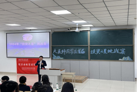 于良经理在致辞中感谢学校对于比赛的大力支持,为深化产教融合双方又迈出坚实的一步,期待同学们在接下来的比赛中充分锻炼和展现出专业能力和职业素质,期待能够取得好的成绩,同时体会更多投资收获和感悟。