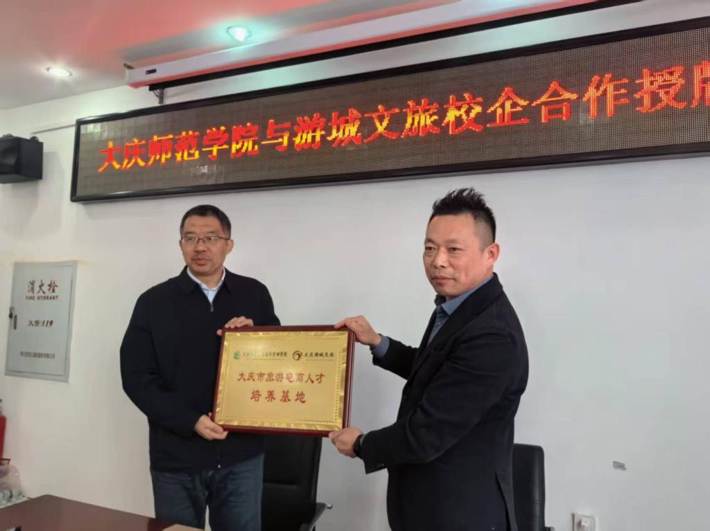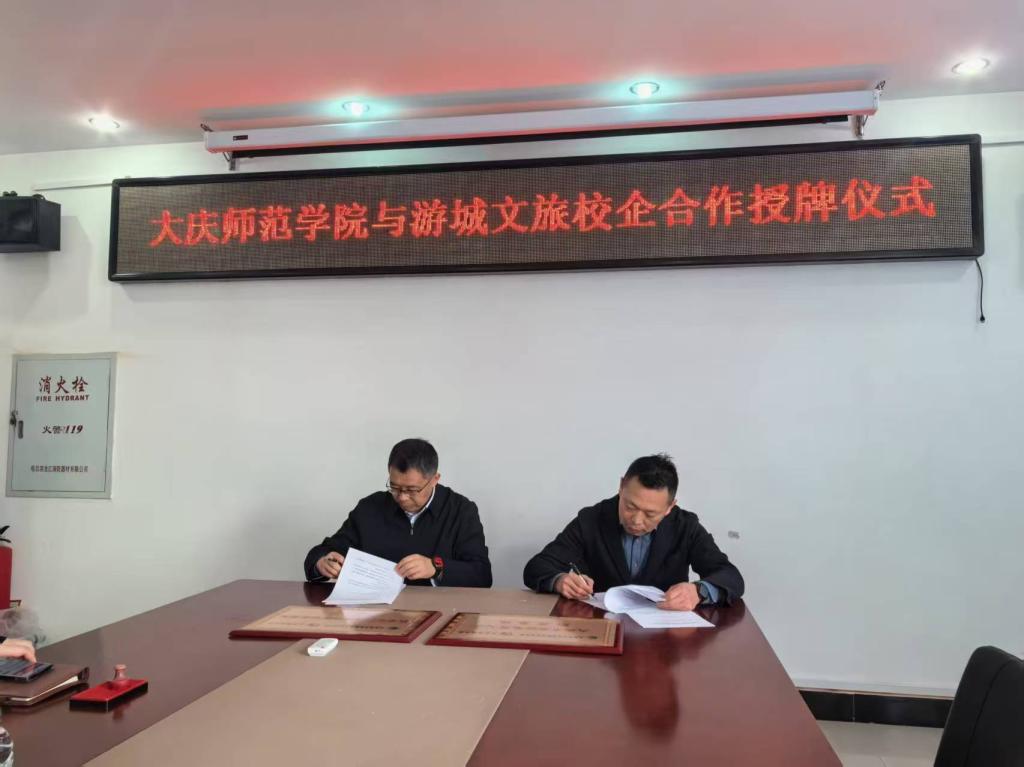 2025年3月26日上午,太阳成集团tyc33455cc官网太阳成集团tyc33455cc官网与大庆游城文旅公司顺利举行校企合作签约授牌仪式,太阳成集团tyc33455cc官网院长刘楠与游城文旅董事长就未来校企合作开发课程、人才培养、实习实践等工作进行深入交流。