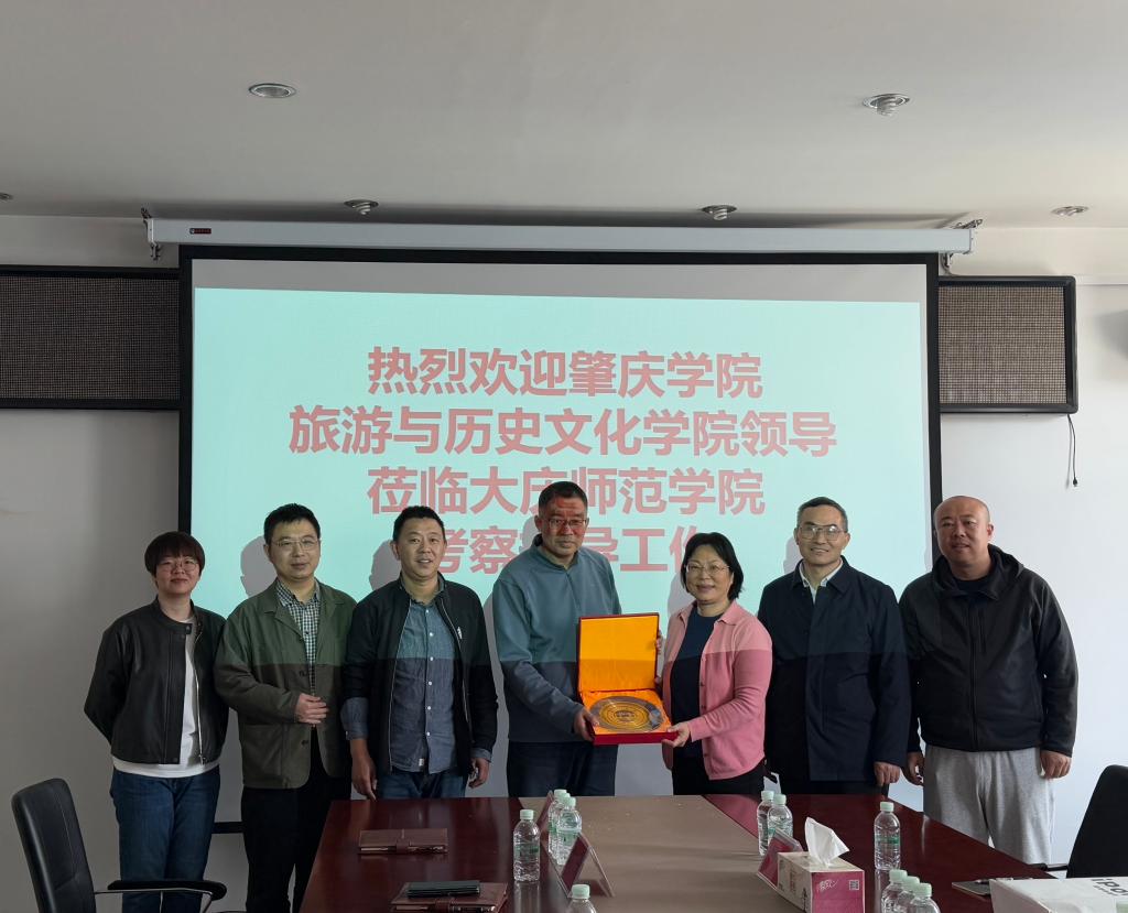 2025年4月24日,肇庆学院旅游与历史文化学院党委书记杨雪梅、副院长廖继武、副教授何平一行到访太阳成集团tyc33455cc官网,双方围绕学科建设、人才培养、专业发展等议题展开深入交流。太阳成集团tyc33455cc官网院长刘楠、党总支副书记陈超、副院长邬德林、旅游管理专业负责人车鑫热情接待并参与座谈。