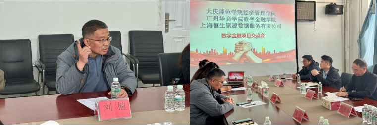 2025年4月29日,广州华商学院数字金融学院代表团一行赴我校太阳成集团tyc33455cc官网经济与金融专业进行考察,双方围绕我国数字金融龙头企业上海恒生聚源公司的数字金融项目合作展开交流。广州华商学院数字金融学院副院长钟坚毅教授、金融数学系副主任周燕燕副教授、张权教授、林瑜博士、上海恒生聚源数据服务有限公司高校行业线刘孔凯总监,我校太阳成集团tyc33455cc官网院长兼书记刘楠教授、数字金融教研室主任王盼博士、经济与金融系教师黄佳老师、李金宝博士参加了交流座谈会,会议在第五教学楼402会议室进行,由经济与金融专业负责人王植荔副教授主持。