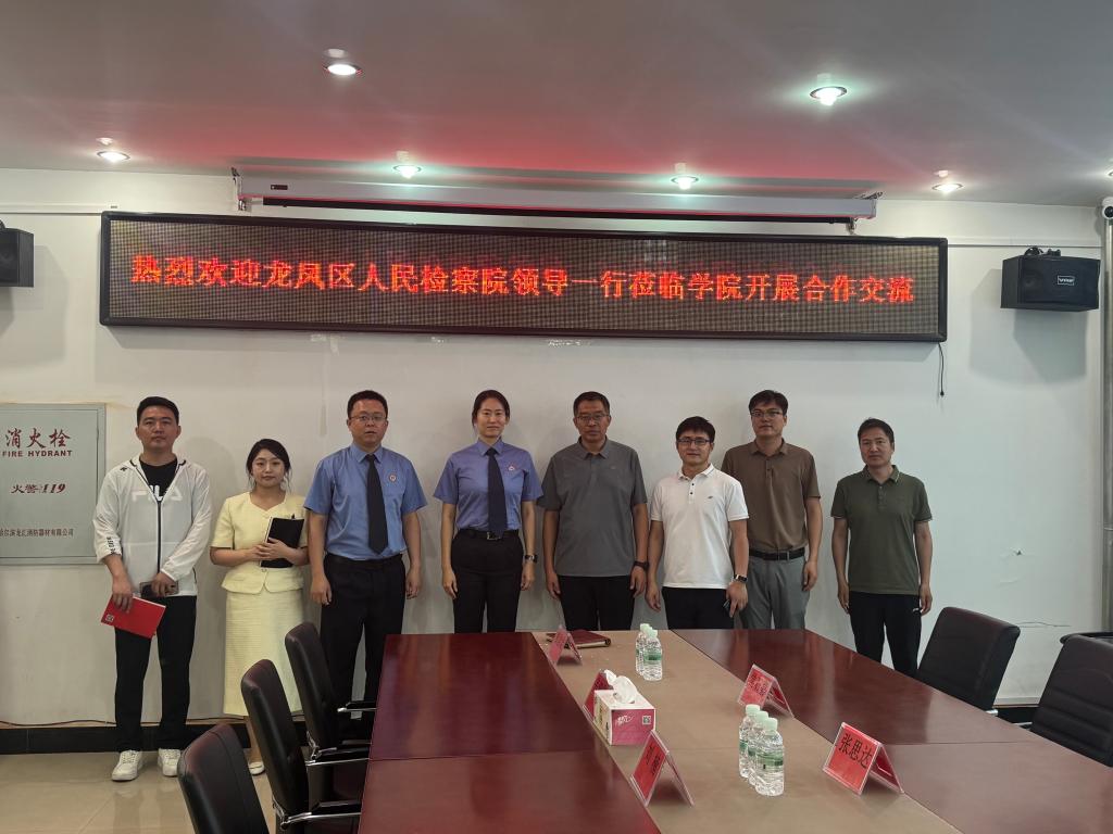 院长刘楠对龙凤区人民检察院一行的到来表示热烈欢迎,并详细介绍了学院的学科建设、人才培养模式以及在产学研融合等方面取得的成果,希望通过此次交流,探索在法治教育、实践基地建设、课题研究等领域与检察院开展合作。