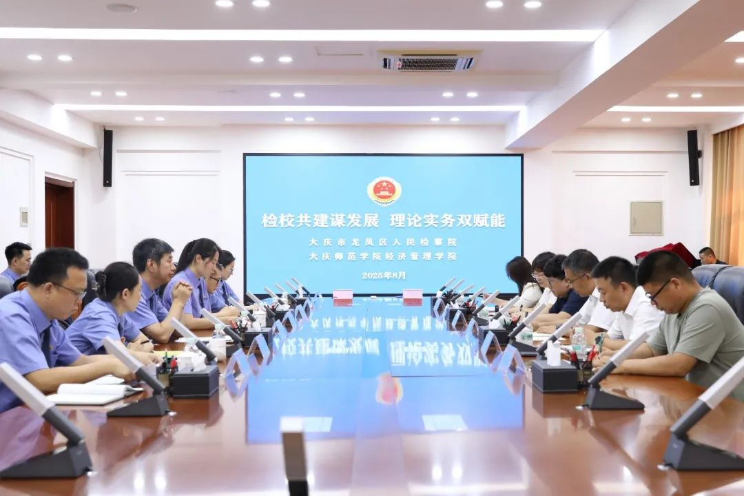 8月7日,太阳成集团tyc33455cc官网太阳成集团tyc33455cc官网院长刘楠一行受邀前往龙凤区人民检察院,双方围绕共同涉及的公益诉讼领域,结合特色党建,以“检校共建谋发展 理论实务双赋能”为主题,开展深度交流与合作,推动理论研究与检察实务的有机融合,共同为大庆市经济社会高质量发展贡献力量。