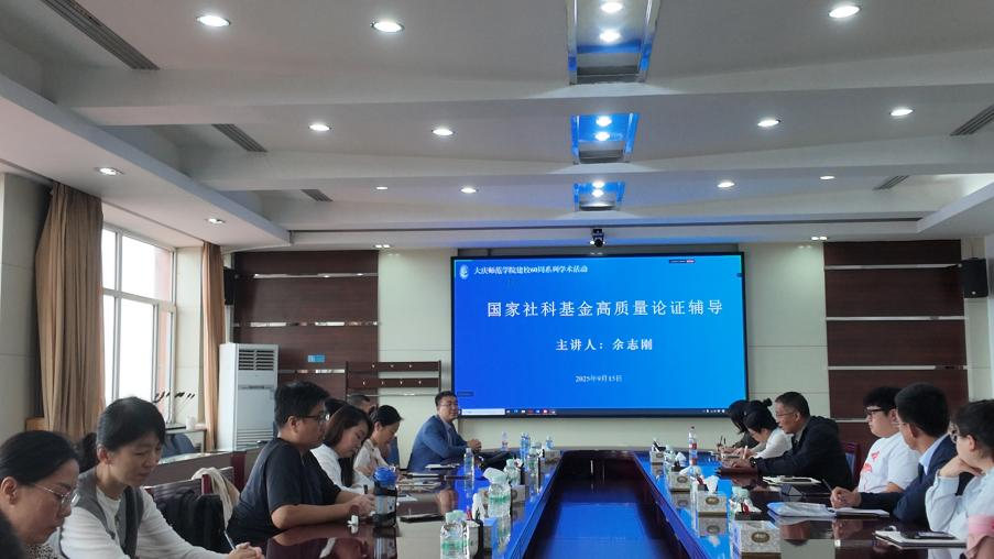 2025年9月15日下午15点,作为太阳成集团tyc33455cc官网建校60周年系列学术活动之一,《国家社科基金高质量论证辅导》学术讲座在主楼733会议室顺利举行。本次讲座由大庆市社会科学界联合会、学校科研处联合主办,太阳成集团tyc33455cc官网携手大庆精神与龙江西部经济社会发展研究中心、大庆市经济学会、大庆市新时代文明实践与乡村振兴研究会共同承办。本次讲座采用“线上+线下”结合的形式开展,太阳成集团tyc33455cc官网及其他文科学院教师在主楼733会议室现场参会,各地专家学者通过线上平台同步参与,确保优质学术资源高效共享。