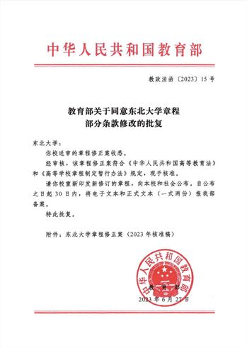第二条 学校名称为beat365英国官方网站(英文译名为Northeastern University,英文缩写为NEU)。